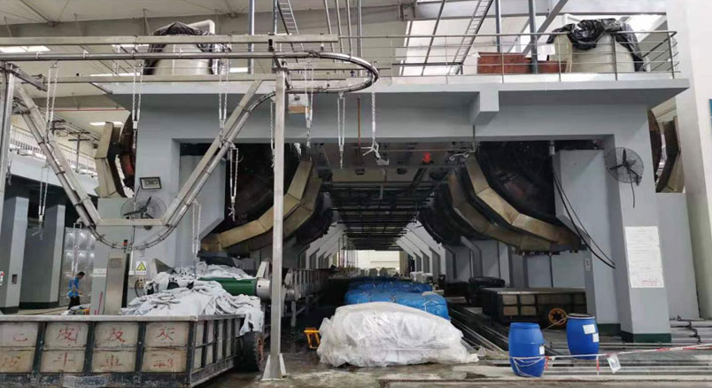 GZGCL 隨著對制革企業(yè)的要求越來越高,制革機(jī)械的設(shè)計加工要求也逐步提高。要求制革機(jī)械的加工更高效率、更低能耗,操作自動化、智能化,安全性更高,減少操作人員數(shù)量及勞動強(qiáng)度。實現(xiàn)制革企業(yè)自動化、智能化、信息化升級。 我司生產(chǎn)的自動化輸送線,有皮革輸送進(jìn)出鼓、自動供水、化料自動供料系統(tǒng);制革生產(chǎn)及加工自動化控制系統(tǒng),制革生產(chǎn)過程在線檢測與控制技術(shù);制革廢液循環(huán)系統(tǒng)及配套檢測設(shè)備。 一、毛皮進(jìn)鼓線 輸送帶將皮從毛皮庫直接輸送至需要投產(chǎn)的轉(zhuǎn)鼓,可自動稱重,到達(dá)指定重量后轉(zhuǎn)鼓鼓門關(guān)閉,輸送帶按設(shè)定的程序?qū)⑵ぽ斔椭疗渌D(zhuǎn)鼓。